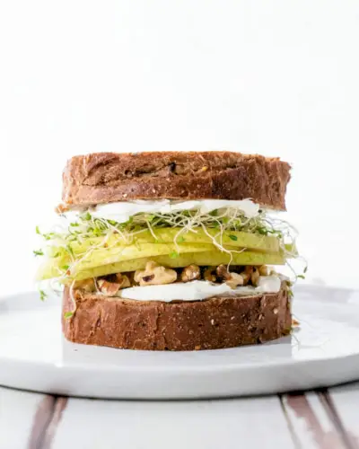 Walnüsse in einem Sandwich? Es stellt sich heraus, dass herzhafter Frischkäse, süße Birne und knackige Nüsse eine einzigartige und dennoch köstliche Geschmackskombination sind! Probieren Sie es als gesunde Mittagessensidee für ein Mittagessen am Schreibtisch im Büro oder als Snack für unterwegs. Irgendwie verschmelzen alle Zutaten perfekt zu einem leichten, aber sättigenden Sandwich.