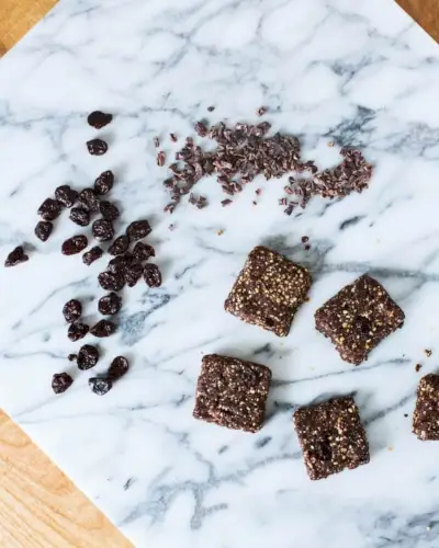 Ein weiteres tolles Mandelrezept ist die Herstellung von Snackriegeln aus Mandeln! Diese ähneln einem selbstgemachten Lara-Riegel, bei dem Mandeln, Kakaopulver, Medjool-Datteln und getrocknete Kirschen verwendet werden, um einen Brownie-ähnlichen, nährstoffreichen Riegel herzustellen. Bei Medjool-Datteln handelt es sich um eine große Dattelsorte mit außergewöhnlicher Süße: Sie werden zur Herstellung der Energieriegel verwendet, die Sie abgepackt im Handel finden. Und es macht noch mehr Spaß, es zu Hause zuzubereiten!