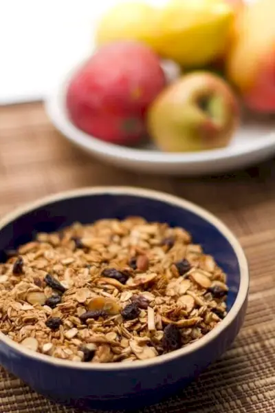 Granola ist ein klassisches Mandelrezept. In diesem Honig-Mandel-Granola glänzen Mandelsplitter in einer Mischung aus Hafer, Honig und Zimt. Mischen Sie Ihre Lieblingstrockenfrüchte (wir lieben Rosinen und getrocknete Kirschen) und genießen Sie es mit Joghurt oder Milch.