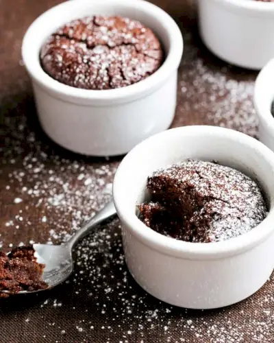 Hier ist ein Schokoladenkuchenrezept aus Mandeln! Durch die Verwendung gemahlener Mandeln anstelle von Mehl ist es von Natur aus glutenfrei: Sie können sie in einer Küchenmaschine mahlen oder gekauftes Mandelmehl verwenden. Es ist reichhaltig, schokoladig und köstlich, gesüßt mit Ahornsirup und Schokoladenstückchen! Die dekadenten Kuchen werden in kleinen Auflaufförmchen als Einzelportionen serviert.
