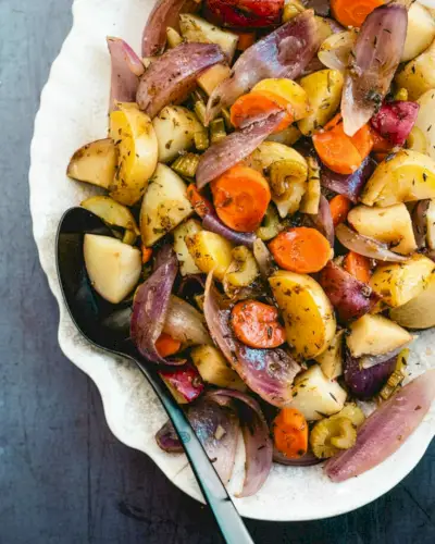 Haben Sie schon einmal Zwiebeln ... geschmort gegessen? Wenn Sie dieses Gemüse in Brühe im Ofen kochen, wird es seidig und herzhaft. In Kombination mit Zwiebeln und Karotten schmeckt dieses geschmorte Gemüse, als hätte es den ganzen Tag unter einem Hähnchen gebraten! Aber sie sind vollständig pflanzlich und gesund und strotzen vor Geschmack, der den Komfort auf die nächste Ebene bringt. Zusammen mit der juwelenfarbenen lila Zwiebel und der orangefarbenen Karotte sind sie die perfekte Beilage für jeden besonderen Anlass.
