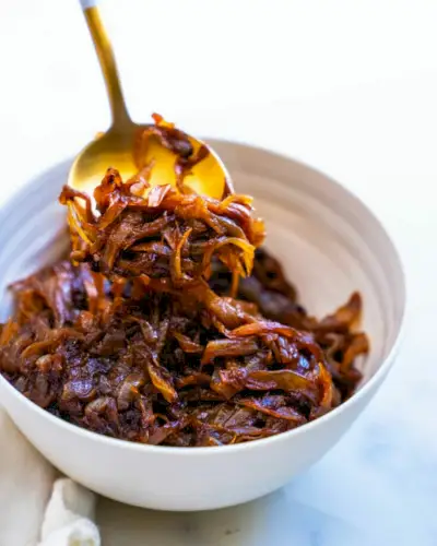 Hier ist eine Fähigkeit, die jeder Hobbykoch beherrschen sollte: wie man Zwiebeln karamellisiert! Jetzt können Sie es sautierte Zwiebeln in nur 10 Minuten. Wenn man sie jedoch über einen Zeitraum von einer Stunde kocht, wird ihr natürlicher Zucker in einer metamorphoseähnlichen Umwandlung freigesetzt. Die Farbe der Zwiebeln variiert von roh und scharf bis seidig glatt und tiefbraun. Der Geschmack ist etwas Außerweltliches: süßlich herzhaft, mit einer unwiderstehlich luxuriösen Textur. Sie drehen sich um Burger , Dips und Nudeln zu reinem Gold.