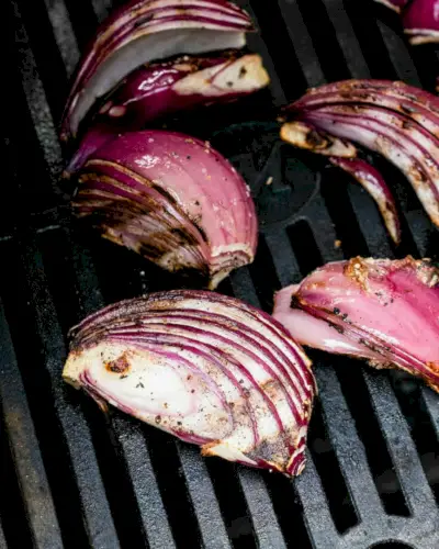 Der Grill tut Wunder bei Zwiebeln: Der Geschmack verändert sich von würzig zu süß und leicht rauchig! Gegrillte Zwiebeln sind eine zarte und verkohlte Version ihres früheren Selbst und die leuchtend rosa Farbe ist einfach lebendig! Fügen Sie rote Zwiebeln und einen Haufen anderes gegrilltes Gemüse hinzu, denn sie fügen hinzu unglaublich Geschmack.