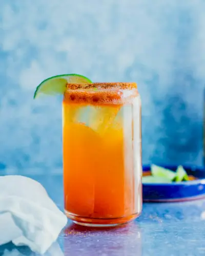 Die Michelada ist scharf Biercocktail Hergestellt aus mexikanischem Bier, Tomatensaft, Limettensaft und scharfer Soße. Betrachten Sie es als eine Art Kombination zwischen a Bloody Mary und a Bier Margarita ! Das Beste daran ist der Glasrand: Eine Mischung aus Old Bay, Chilipulver und Selleriesalz verleiht dem erfrischenden Getränk eine salzige, herzhafte Note. Der Geschmack ist für viele Anlässe genau richtig: vor allem zum Brunch!