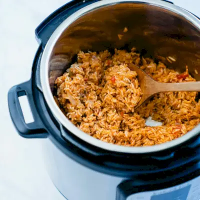 Auf der Suche nach einer veganen Beilage zu Tacos oder Enchiladas ? Oder eine Füllung für einen Burrito? Hier ist Ihre Lösung: Instant Pot spanischer Reis! Es ist wirklich überhaupt nicht spanisch, sondern mexikanisch, gewürzt mit Zwiebeln, Salsa und rauchiger Adobo-Sauce. Es ist voller Geschmack und hat eine leuchtend leuchtend rote Farbe! Es ist voller Geschmack und mit dieser praktischen Methode einfach zuzubereiten.