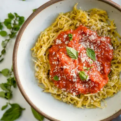 Vorbei sind die Zeiten, in denen man mehr als eine Stunde warten musste Spaghettikürbis im Ofen rösten . Diese Instant-Pot-Spaghettikürbis-Methode halbiert die Zeit! Die Kochzeit beträgt nur 8 Minuten . Mit den 5 Minuten zum Vorheizen und 10 Minuten zum anschließenden Abtropfenlassen des Kürbisses sehen Sie immer noch nur ungefähr aus Insgesamt 25 Minuten . Servieren Sie es mit Ihrem Lieblingsgericht Marinara-Sauce !