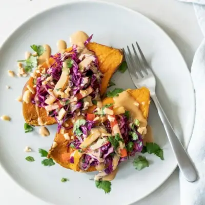 Diese gebackenen Süßkartoffeln nach thailändischer Art sind aufgrund des großartigen Geschmacks in diesem einfachen Konzept eines unserer liebsten veganen Instant Pot-Rezepte. Der Instant Pot sorgt für perfekt gekochte, saftige Süßkartoffeln. Garniert werden sie mit einem frischen, knackigen Paprika-Kohl-Krautsalat nach thailändischer Art und einer cremigen Erdnusssauce. Wir haben von vielen Lesern und Followern gehört, dass dies ein Familienfavorit ist!