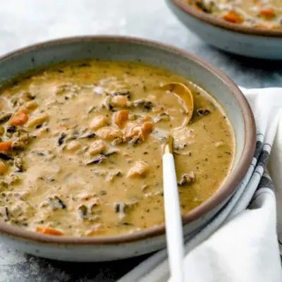 Eines unserer beliebtesten veganen Instant Pot-Rezepte ist diese Wildreissuppe! Es ist cremig und wohltuend, mit weißen Bohnen, Karotten, Pilzen und Wildreis. Die Cremigkeit kommt von Cashewkernen, die mit einem Teil der Suppe vermischt werden, wodurch ein cremiger Körper entsteht. Das ergibt eine herzhafte vegane Suppe, die alle Esser genießen können!