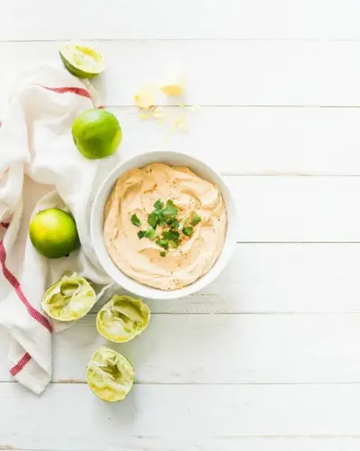 Hier ist ein Limettenrezept, das darauf wartet, über fast alles geträufelt zu werden: Koriander-Limetten-Crema! Diese mexikanisch inspirierte Sauce eignet sich perfekt zum Verfeinern von Tacos und Burritos. Gleichzeitig schmeckt es genauso lecker als Dip zu Süßkartoffel-Pommes und gegrillten Garnelen. Es ist voll von pikantem Kräutergeschmack und lässt sich schnell und einfach mischen. Alex und ich haben es uns zur Aufgabe gemacht, unseren DIY-Quesadillas ein wenig zu beträufeln, und es ist wirklich himmlisch.