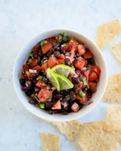 Schwarze Bohnen sind die perfekte proteinreiche Ergänzung zu Salsa Fresca, einer Salsa, bei der frische Tomaten statt Dosentomaten verwendet werden. Verwenden Sie es zum Dippen von Tortillachips, zum Löffeln in einen Burrito oder Quesadilla oder als Belag für Tacos, Ofenkartoffeln usw gegrillte Avocado .