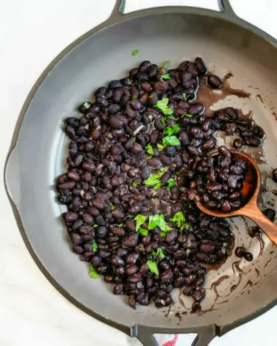 Diese gekühlten schwarzen Bohnen sind eines der einfachsten Rezepte, die es gibt. In nur 15 Minuten haben Sie eine cremige Beilage voller Knoblauch-Kreuzkümmel-Geschmack! Sie liefern einen Schuss pflanzliches Protein, das jede Mahlzeit sättigender macht. Servieren Sie sie als Beilage oder als Teil unseres Gekühlte Bohnen-Tacos .