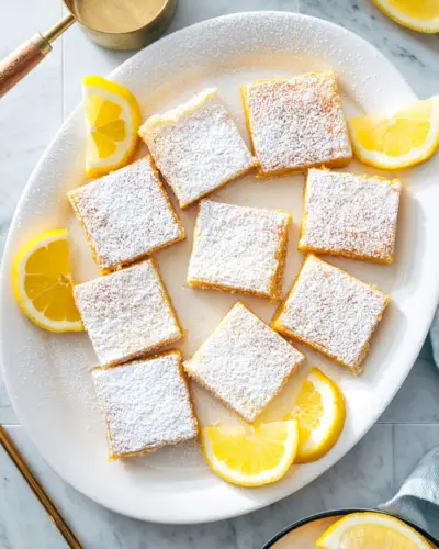 Dieses einfache Rezept für Zitronenriegel (auch bekannt als Zitronenquadrate) birgt alle Geheimnisse von Oma! Auf einer dicken Mürbeteigschicht liegt eine pikante Vanillesoße.