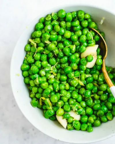 Psst, wir haben ein Geheimnis. Gefrorene Erbsen können in 5 Minuten fantastisch schmecken. Ja, Sie können eine Tüte dieser gefrorenen grünen Kugeln in eine einfache Beilage verwandeln, die jeder am Tisch lieben wird. ( Versprechen! ) Das Geheimnis? Etwas Olivenöl, Butter, Knoblauch und Zitrone. Das ist es! Es stellt sich heraus, dass es nicht so schwer ist, wie Sie denken.