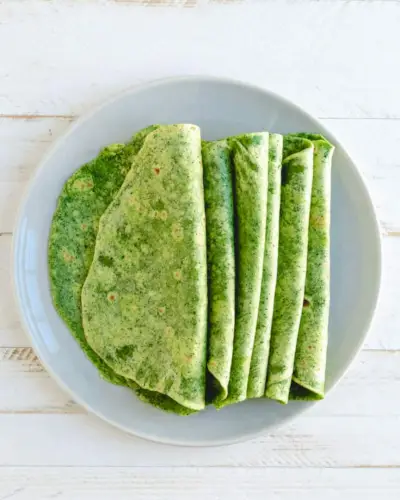 Dieses vegetarische Quesadilla-Rezept enthält doppelt so viel Spinat: Er ist in den Tortillas und in der Füllung enthalten! Wenn Sie keine Zeit haben, Spinat-Tortillas zu Hause zuzubereiten (siehe oben), schnappen Sie sich ein paar im Laden gekaufte. Dann füllen Sie sie mit schwarze Bohnen , Süßkartoffeln und sautierter Spinat für eine vegetarische Füllung! (Und natürlich etwas Käse.)