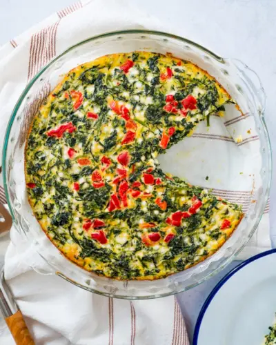 Auf der Suche nach einem Spinatrezept zum Frühstück oder Brunch ? Probieren Sie eine Quiche ohne Kruste! Es ist köstlich herzhaft und herzhaft, mit viel Protein, um den Bauch den ganzen Morgen über satt zu halten. Noch besser: Es ist so einfach zuzubereiten! Sie müssen sich nicht um einen Quiche-Boden kümmern: Einfach die Füllung verquirlen und in den Ofen schieben. Diese Spinatquiche ohne Kruste ist ein kleines Wunder: Sogar unser 4-Jähriger mit Spinatangst liebt sie!