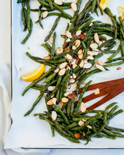 Ein heißer Ofen verzaubert fast jedes Gemüse; Hier verwandelt es grüne Bohnen in eine zarte, karamellisierte Version ihrer selbst. Fügen Sie einen Spritzer Zitronensaft und eine Prise hinzu geröstete Mandeln , und es ist eine einfache, aber dennoch köstliche Beilage, die perfekt zu Thanksgiving (oder zu jeder anderen Zeit) passt.