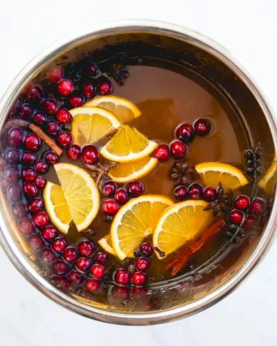 Das gemütlichste Weihnachtsgetränk: Glühwein! Dieser Apfelwein wird mit ganzen Gewürzen geköchelt, bis er ein warmes, würziges Aroma entfaltet! Zimt, Piment, Muskatnuss, Nelken und Sternanis sorgen für das bestmögliche Duftaroma. Jeder wird eine Tasse davon haben wollen! Wenn Sie möchten, fügen Sie einen Schuss Rum hinzu! Sie können es in einem machen Slow Cooker , Instant Pot, oder auf dem Herd .
