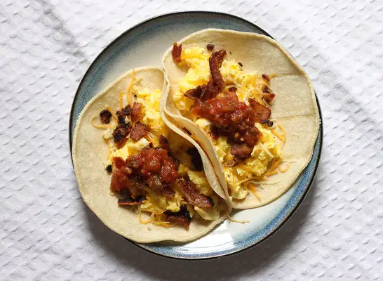 Holen Sie sich unser Rezept für Eier und Speck -Tacos.