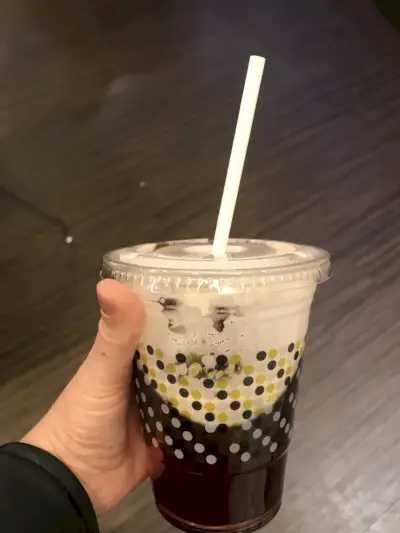 Der Hibiskus Tee-Sangria schmeckt der Hibiskus-Limonade sehr ähnlich, jedoch ohne Limonade. Als ich dieses Getränk zum ersten Mal bestellte, enthielt es Orangen- und grüne Apfelstücke, was es zu einer Sangria machte. Die Früchte machten das Getränk unterhaltsam und sorgten gegen Ende für etwas Geschmack. Als ich es das nächste Mal bestellte, gab es jedoch kein Obst. Ich bin mir nicht sicher, ob sie aufgebraucht waren oder ob die Person, die es zubereitete, an diesem Tag einfach nur faul war, aber ohne war das Getränk definitiv weniger aufregend.