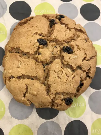 Haferflocken-Rosinen-Kekse haben einen schlechten Ruf, aber ich finde sie köstlich. Argo Tea’s hat viel Zimt und große, saftige Rosinen. Es ist weniger süß als der Schokoladenkeks, außerdem können Sie so tun, als ob die Haferflocken ihn gesund machen. Ich empfehle, diesen Keks nicht erwärmt zu bestellen. Dabei zerfällt es sehr leicht, und ehrlich gesagt bevorzuge ich seinen Geschmack bei Zimmertemperatur.