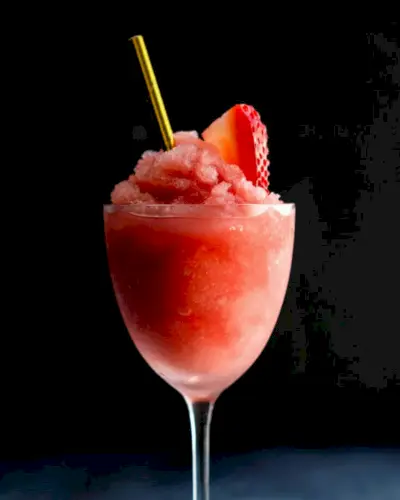 Das nächstbeste Rosengetränk ist ein moderner Klassiker: gefrorene Rose ! Auch bekannt als Frosé, handelt es sich um eine Mischung aus einem gefrorenen Cocktail und dem typischen Sommerwein. Dieses Slushie ist gerade süß genug, mit dem zarten Geschmack des Weins und der natürlichen Süße von Erdbeeren. Tipp: Sie müssen die Slushie-Mischung mindestens 6 Stunden oder über Nacht einfrieren, denken Sie also unbedingt voraus!