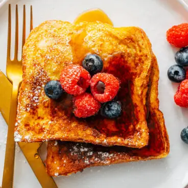 Für uns ist das perfekte Brioche-French-Toast-Topping einfach: nur eine Prise Puderzucker und ein Schuss reinen Ahornsirup. Aber wenn Sie unterhaltsam sind, möchten Sie bei einem Special beeindrucken Frühstück oder Brunch , fügen Sie noch ein paar Toppings hinzu, um es zu übertreffen! Hier ein paar Ideen: