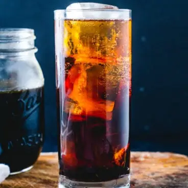 Ich liebe einen guten Nitro-Kaffee, kaltes Gebräu , oder Eiskaffee ? Dann werden Sie diese einzigartige Art der Koffeinzufuhr lieben: die Kaffee-Soda ! Gleiche Teile vermischen Sodawasser Und Kalt gebrühter Kaffee Hier wird es in einem hohen Glas mit Eis serviert. Der Geschmack hat uns umgehauen: Er ist bittersüß und sprudelnd, mit einer Helligkeit durch die Kohlensäure, die an Nitrokaffee erinnert. Das ist unsere neue Lieblingsart, Kaffee zu trinken, besonders am Nachmittag! Es ist im Wesentlichen hausgemachter Nitrokaffee und wahnsinnig erfrischend.