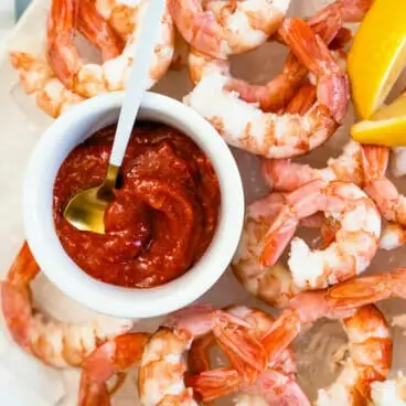 Gute Frage. Diese selbstgemachte Cocktailsauce können Sie mehrere Monate gekühlt aufbewahren. Einige Quellen behaupten, dass es bis zu 6 Monate hält; wir würden etwa 3 Monate empfehlen. Das bedeutet, dass Sie eine große Menge zubereiten können, um sie zum Dippen aufzubewahren. Apropos…