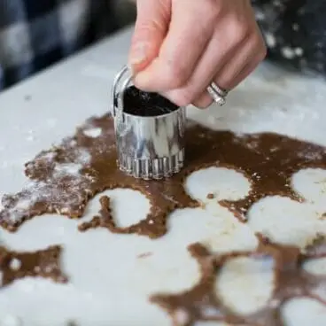 Diese Lebkuchen-Sandwichkekse haben eine gesunde Füllung aus Mandelbutter und reiner Ahorncreme. Es ist ein himmlisches Stückchen und die kleine Portionsgröße macht es zu einem relativ gesunden Dessert. Sie eignen sich perfekt für Herbst und Winter, sogar als Weihnachtsplätzchen! Der Keksteig ist ein normaler Teig aus Mehl und Zucker, der mit frisch geriebenem Ingwer noch ingriger wird. Der Teig kühlt 3 Stunden lang. Berücksichtigen Sie dies also unbedingt bei Ihrem Timing! Nach dem Abkühlen rollt man den Teig aus und benötigt Ausstechformen wie diese oder ein anderes kleines Objekt, um einen Kreis mit einem Durchmesser von 1 1/2 Zoll auszuschneiden. Sie können auch größere Kekse mit größeren Ausstechformen backen. Beachten Sie jedoch, dass Sie die Backzeit möglicherweise um einige Minuten verlängern müssen, da die Kekse größer sind.