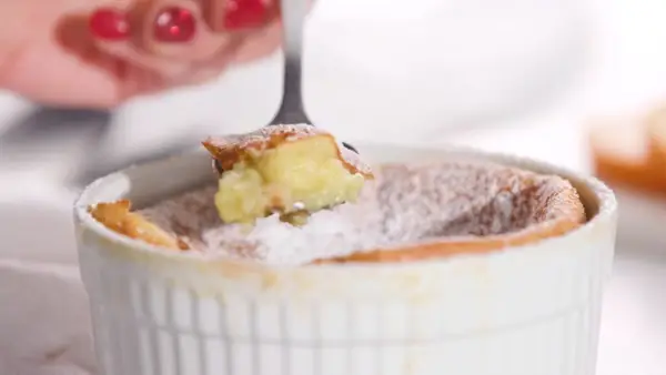 Wie Pépin feststellt, liegt der Schlüssel zu einem gelungenen Soufflé darin, wie man die in das Eiweiß geschlagene Luft einarbeitet und aufrechterhält. Um die besten Ergebnisse zu erzielen, sollten Sie unbedingt mit zimmerwarmen Eiern beginnen. Kalte Eier schränken die Lautstärke ein, die Sie erzeugen können. Das Eiweiß steif schlagen. Heben Sie die Crème Pâtissière vorsichtig unter das Eiweiß und achten Sie darauf, dass die Spitzen nicht entweichen. Gießen Sie die Mischung in die Form und backen Sie sie luftig perfekt.