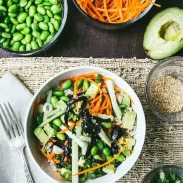 Dieses vegane Sushi-Bowl-Rezept ist vegetarisch, vegan, glutenfrei, milchfrei und pflanzlich.