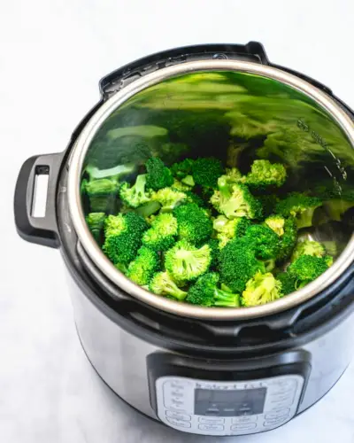 Möchten Sie Brokkoli am schnellsten kochen? Im Instant Pot dämpfen! Ja, dieses Rezept hat eine Garzeit von null Minuten im Schnellkochtopf. Ja, Sie stellen den Instant Pot-Timer auf 0 Minuten ein. Nach ca. 5 Minuten Vorheizen ist Ihr Brokkoli fertig! Es wird perfekt hellgrün und zart, ähnlich wie beim Dämpfen. Fügen Sie einen Spritzer Olivenöl und Feta-Streusel hinzu, und es ist fantastisch.