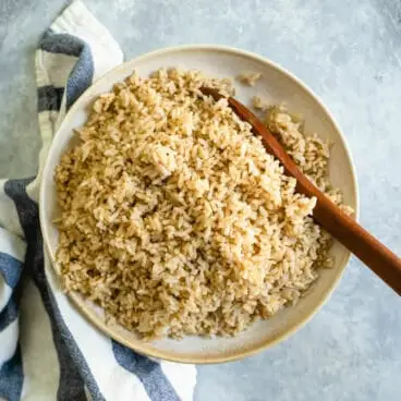 Instant Pot brauner Reis ist im Vergleich zur Herdmethode sehr schnell. Servieren Sie diesen Reis mit einem Brokkoli unter Rühren anbraten oder Garnelen unter Rühren anbraten , oder daneben Süßkartoffel-Curry oder Kichererbsen-Curry . Machen Sie ein Burrito-Schüssel , Lachsschale , oder Garnelenschale . Wenn Sie Reste haben, machen Sie es gebratener Reis oder Gebratener Tofu-Reis !