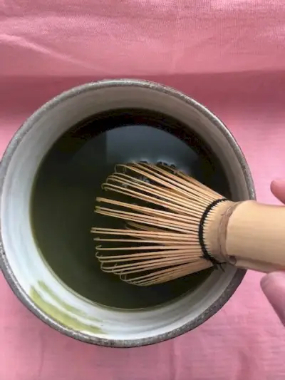Ich dachte auch, dass es am besten wäre, es zunächst als Latte (oder zumindest mit Milch) zuzubereiten. Im Anschluss an die Wegbeschreibung von DavidsTea Ich begann damit, meinen Matcha auf traditionelle Weise in einem Chawan (Matcha-Schüssel) und einem Chasen (Matcha-Schneebesen) zu verquirlen. Ich fand die Rührvorgänge viel einfacher, als ich gedacht hatte. Ich konnte alle Klumpen aufbrechen (ich glaube, es hat geholfen, die Mischung zuerst durch ein Sieb zu geben), aber ich war mir nicht sicher, ob ich genug Schaum bekam. Dann habe ich es in eine Tasse gegossen und mit etwas aufgeschäumter Milch aufgefüllt (obwohl „aufgeschäumt“ ein starkes Wort ist, reichen meine Einmachglas- und Mikrowellenmethode nicht mehr wirklich aus). Insgesamt war ich mit meinem Latte sehr zufrieden. Ich habe keinen deutlichen Vanillegeschmack wahrgenommen, aber es war auf jeden Fall süß und lecker. Was die erste Zubereitung von Matcha angeht, finde ich, dass es ziemlich gut war.