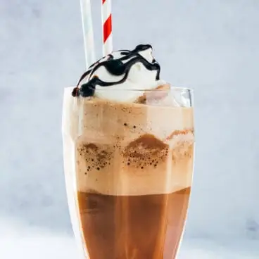 Sie müssen nicht das Haus verlassen, wenn Sie Lust auf einen Frappe haben: Probieren Sie dieses süße und frostige hausgemachte Gericht Mokka-Frappé ! Es ist so einfach wie 4 Zutaten, Eis und ein Mixer. Dieser schmeckt fluffig und schokoladig, mit einem dezent bitteren Kaffee-Abgang. Es ist unwiderstehlich lecker und lässt sich in nur 2 Minuten mixen. Normalerweise tendieren wir zu mehr klassische Kaffeegetränke …aber dieser hier ist einfach zu gut!