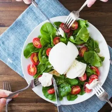Dieser Rucola-Tomaten-Burrata-Salat ist in 5 Minuten fertig und ist die perfekte Vorspeise für jede italienisch inspirierte Mahlzeit.