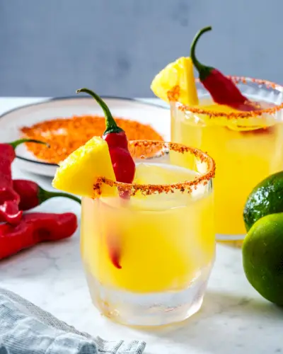 Felgenvarianten: Probieren Sie Margarita-Salz oder einen Tajín-Rand, eine mexikanische Gewürzmischung aus Chilischoten, Limette und Salz, die für einen würzigen, würzigen Geschmack sorgt.