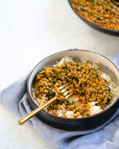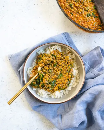 Alex und ich haben an unserem Repertoire gearbeitet schnelle und einfache Abendessenideen jahrelang. Es ist eine ständige Herausforderung, die Snacks zu finden, die schnell, gesund und lecker zugleich sind! Dieses Kokos-Linsen-Curry entstand aus einer Idee, die ich eines Abends hatte, als ich versuchte herauszufinden, was ich mit etwas Grünkohl aus dem Garten machen sollte. Ich fügte nach Belieben ein paar Linsen und eine Dose Kokosmilch hinzu, die wir zur Hand hatten, gab etwas Currypaste hinzu und voilà! Es stellte sich heraus Also lecker, dass wir beschlossen haben, es hier zu teilen. Lesen Sie weiter für dieses Kokos-Linsen-Curry-Rezept.