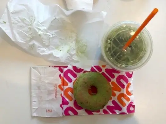 Dunkins Donut mit Matcha-Topping ist im wahrsten Sinne des Wortes ein glasierter Donut mit Matcha-Pulver. Jetzt trinke ich gerne Matcha, ich backe sogar gerne mit Matcha, aber ich habe keine Lust, reines Matcha-Pulver zu essen. Trotzdem beschloss ich, den Donut mit Matcha-Geschmack auszuprobieren.