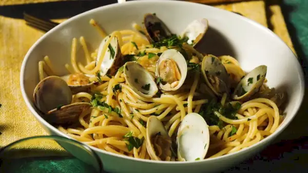 11 Essens- und Getränkeregeln, nach denen Italiener lebenHier werden Spaghetti con vongole in Bianco und nicht in Rosso mit Tomaten und Basilikum zubereitet. Das Nudelgericht mit Muscheln hat seinen Ursprung in Neapel. Abgesehen von der roten Paprika unterscheidet sich dieses Rezept nicht weit von dem ersten dokumentierten Rezept von Ippolito Cavalcanti in seinem Kochbuch von 1839. Einige moderne Interpretationen von Spaghetti mit Muscheln enthalten auch einen Schuss trockenen Weißwein; Wenn Sie es einmal versuchen möchten, fügen Sie es zusammen mit den Muscheln anstelle des Wassers hinzu.