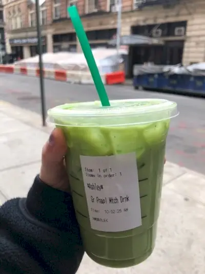 Profi-Tipp: Bestellen Sie eine Matcha-Limonade ohne Limonade, wenn Sie einfachen, eisgekühlten Matcha suchen. Mein Getränk war überhaupt nicht pudrig, als ich es bestellte, aber es war immer noch ziemlich süß.