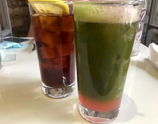 Auf der Speisekarte von Sunflower ist mir ein Matcha Americano aufgefallen, was ich noch nie zuvor gesehen habe. Der Matcha Americano ist nur ein Matcha-Schuss in Wasser, aber ich wollte ihn unbedingt probieren. Ich bevorzuge definitiv einen Matcha-Latte, aber das war trotzdem ein gutes Getränk … bis ich am Ende angelangt war, als es sich irgendwie pudrig anfühlte.