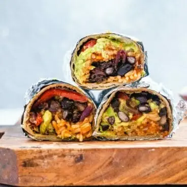 Willkommen bei ... Ihrer neuen gesunden Lieblingsmahlzeit. Nun, zumindest gehört es uns! Etwas an all diesen leckeren Füllungen, die sich gemütlich in eine Tortilla schmiegen, macht einen Burrito unwiderstehlich. Denn Alex und ich essen hauptsächlich pflanzlich , beschlossen wir, es mit einem zu versuchen veganer Burrito . Zu sagen, dass es ein voller Erfolg war, ist eine Untertreibung! Dieser Burrito ist voller Aromen von spanischem Reis (auch bekannt als mexikanischer Reis), gewürzten schwarzen Bohnen, Paprika und Zwiebeln sowie pürierter Avocado. Noch besser: Verfeinern Sie es mit einer pikanten veganen Sauce. Bereit zum Kochen?