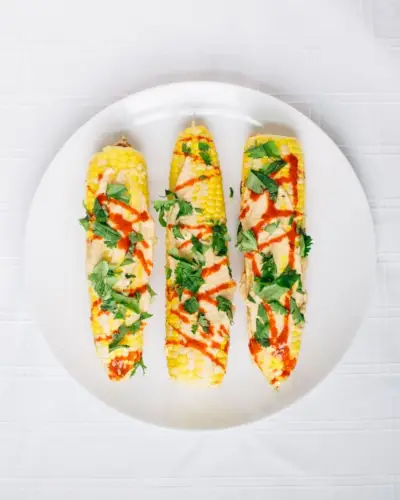 Dieser wahnsinnig gute, würzige Maiskolben wird mit den perfekten Zutaten gekrönt: einem zitronigen Tahini-Spritzer, scharfer Sriracha-Sauce und Koriander.