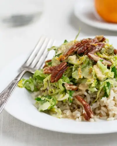 Geraspelter Rosenkohl mit Tahini-Dressing