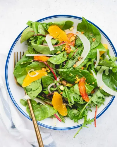 Hier ist eine elegante Beilage, die zu fast allem passt: Fenchel-Orangen-Salat! Es enthält wunderschöne saftige Orangen mit ihrer leuchtenden Farbe und ihrem zitronigen Geschmack. Fügen Sie dazu geschnittenen rohen Fenchel hinzu, der eine subtile Lakritzessenz hinzufügt. Geben Sie es mit einer pikanten, hausgemachten Zitrusvinaigrette über das Gemüse und es ist atemberaubend. Orange und Jakobsmuscheln sind die perfekte Geschmackskombination!