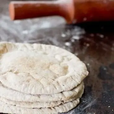 Wir haben dieses selbstgemachte Fladenbrot wie verrückt gegessen – ich glaube nicht, dass wir wieder gekauftes kaufen werden! Das Rezept scheint ziemlich narrensicher zu sein; Wir haben mehrere Varianten ausprobiert und hatten jedes Mal Erfolg. Wenn Sie sich einmal an der Herstellung von selbstgebackenem Brot versuchen möchten, sind Pitas ein guter Ausgangspunkt. Sie werden begeistert sein, wie sich das Pita-Gericht aufbläht und so eine hübsche kleine Tasche ergibt.